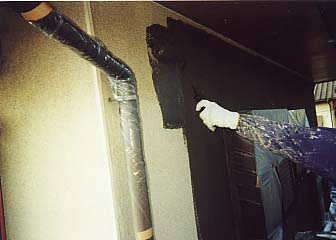 このカチオンフィーラを塗らないと、3年もしないうちにリシン掻き落とし壁と、塗り替えをした塗膜とが